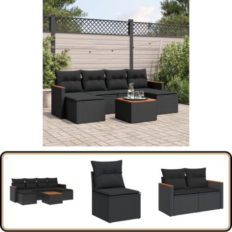 Wow, was für ein mega Garten-Set! Dieses 4-teilige Rattan Sofa macht deine Terrasse oder deinen Garten zur richtigen Lounge-Oase. Komplett mit allem, was du brauchst: 2 Zweisitzer-Sofas, 1 Ecksofa, 1 Couchtisch, 6 Kissen und 5 Sitzpolstern. \\n\\nDie Maße im Detail: \\n- 2-Sitzer: 124 x 65 x 62 cm \\n- Ecksofa: 65 x 65 x 62 cm \\n- Couchtisch: 60 x 60 x 36 cm \\n- Sitztiefe: 57 cm - super bequem! \\n\\nDas PE-Rattan ist total wetterfest - kannst es also bedenkenlos draußen stehen lassen. Der Stahlrahmen ist pulverbeschichtet und damit mega stabil, der Couchtisch aus massivem Akazienholz sieht nicht nur gut aus, sondern hält auch was aus. \\n\\nDie Polster und Kissen sind aus 100% Polyester - bequem, pflegeleicht und die cremeweiße Farbe passt super zum schwarzen Rattan. Einfach ein Traum-Set für gemütliche Sommerabende mit Freunden oder Familie! Leicht genug, dass du es umstellen kannst, aber schwer genug, dass es nicht wegfliegt. Perfekt für Garten, Terrasse oder Balkon!