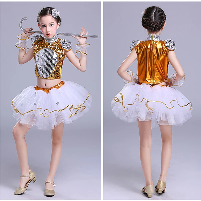 TTAO Mädchen Tanzkostüm 2-teilig - Pailletten Hip Hop Jazz Outfit Mit Oberteil & Hose