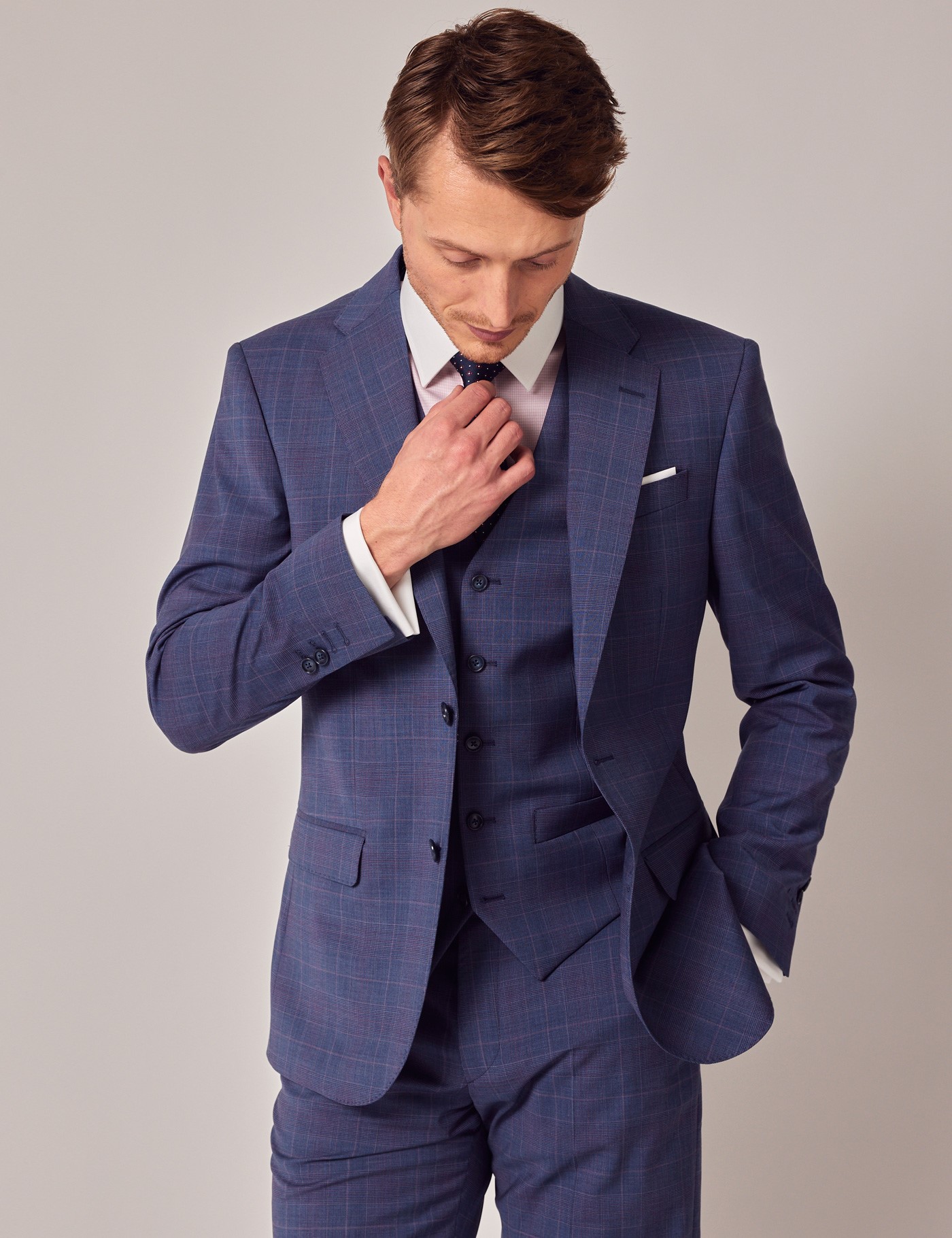 Blauer 3-teiliger Anzug Im Prince-of-Wales-Karo - Maßgeschneidert Für Hochzeiten & Festliche Anlässe