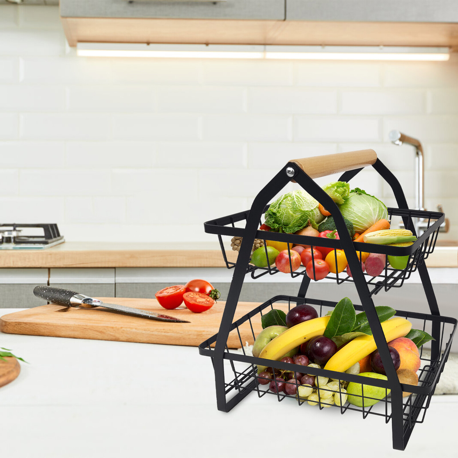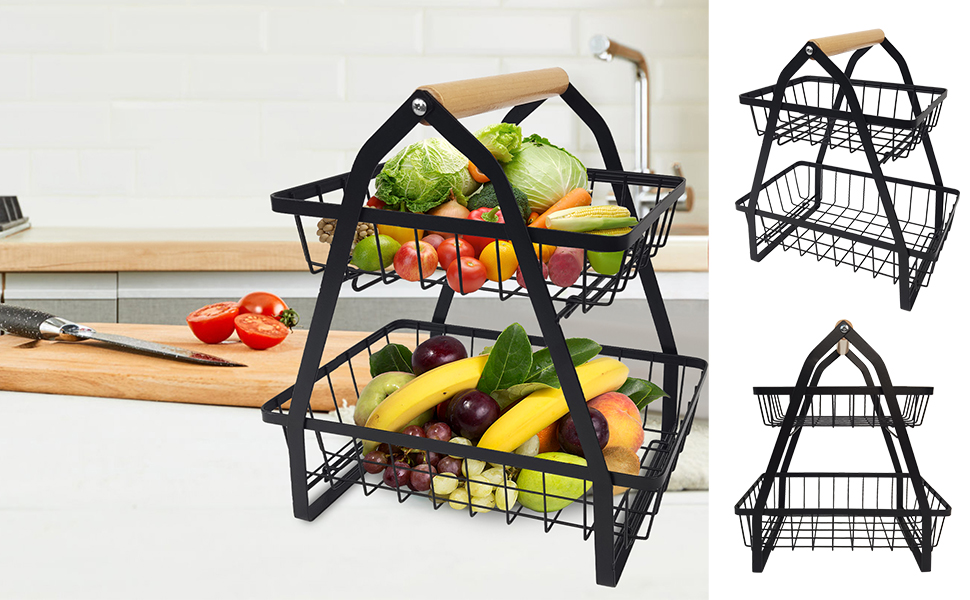 Geniale Platzersparnis für deine Küche! Dieser zweistöckige Obstkorb in schickem Schwarz mit natürlichen Holzdeckeln. Du kannst ihn entweder an der Wand befestigen oder einfach stapeln - super flexibel! Aus robustem Metall gefertigt, hält er auch schwereres Obst problemlos aus. Die offene Drahtkonstruktion sorgt für gute Belüftung - dein Obst bleibt länger frisch! Die Holzdeckel oben drauf kannst du zusätzlich als Ablage nutzen - für Gewürze, kleine Pflanzen oder Deko. Perfekt für Küche, aber auch super im Badezimmer oder Wohnbereich! Endlich mehr Platz auf der Arbeitsfläche - und das bei stylischem Design! Einfach montiert, sieht aber aus wie vom Einrichtungshaus. Ob für Äpfel, Bananen, Tomaten oder als Aufbewahrung für Küchenutensilien - dieser Korb ist ein echter Allrounder! Macht jede Küche gleich viel ordentlicher und schöner!