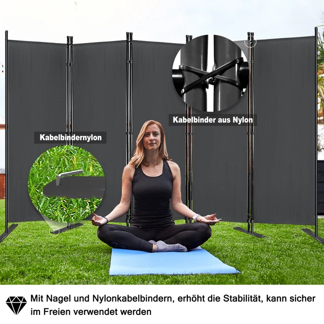 Brauchst du mehr Privatsphäre in deiner Wohnung? Dieser 4-teilige Raumteiler ist die perfekte Lösung! Mit 160cm Breite und 180cm Höhe trennt er Räume effektiv, ohne dass du gleich Wände einreißen musst. Aus pulverbeschichtetem Eisen und Polyester-Stoff ist er stabil, aber trotzdem leicht zu bewegen. Das elegante Kreis-Design oben gibt ihm einen besonderen Look. Super praktisch: Wenn du ihn nicht brauchst, klappst du ihn einfach zusammen und stellst ihn in die Ecke. Perfekt fürs Schlafzimmer, um den Kleiderschrank abzutrennen, oder im Wohnzimmer für eine gemütliche Leseecke. Der Stoff ist übrigens nicht komplett blickdicht - er lässt noch etwas Licht durch, was aber eine schöne stimmungsvolle Atmosphäre schafft. Ein bisschen Zusammenbau ist nötig, aber das schaffst du easy. So einfach war Raumgestaltung noch nie!