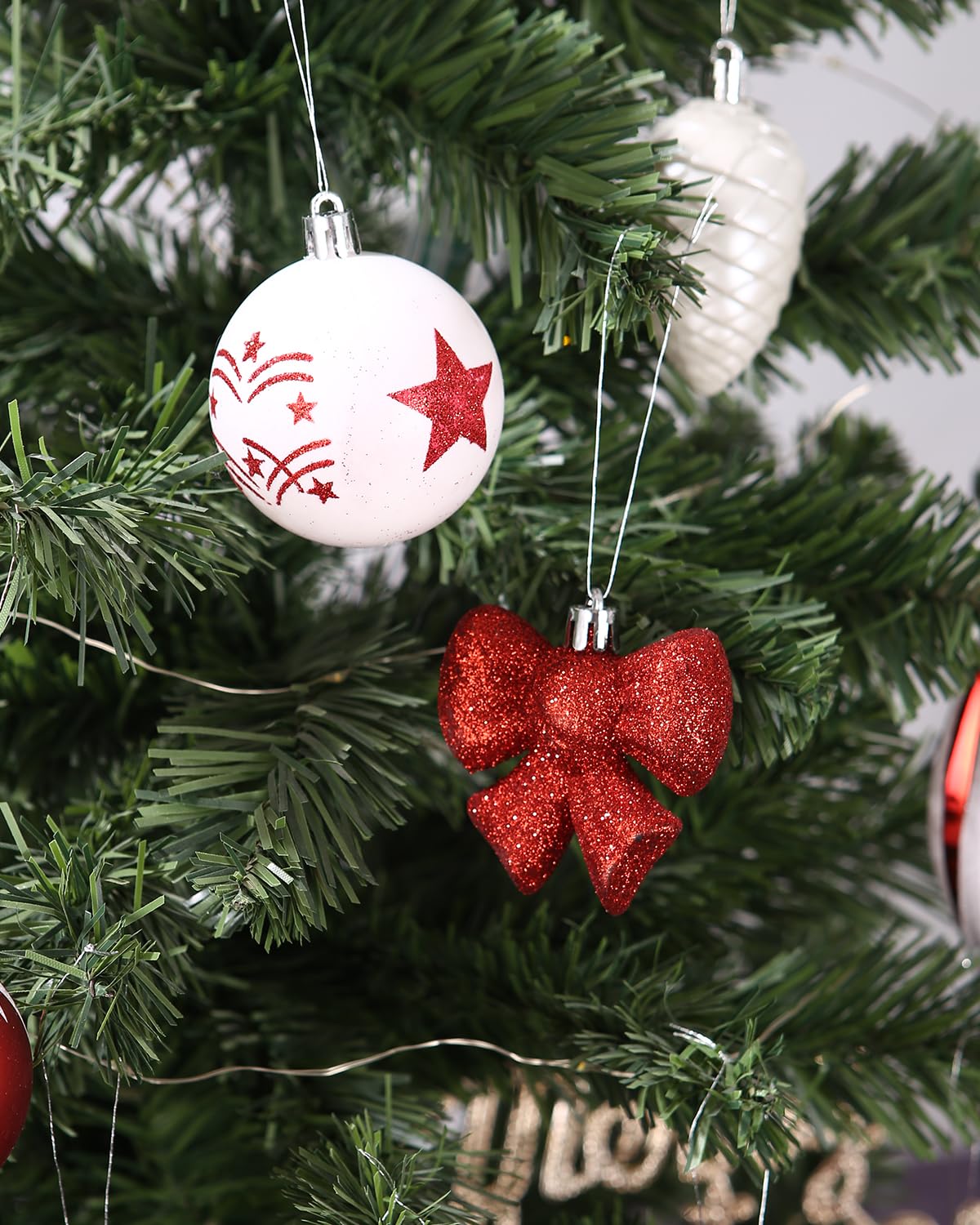 105-teiliger Weihnachtsschmuck Set - Rote Kugeln, Schneeflocken, Stern