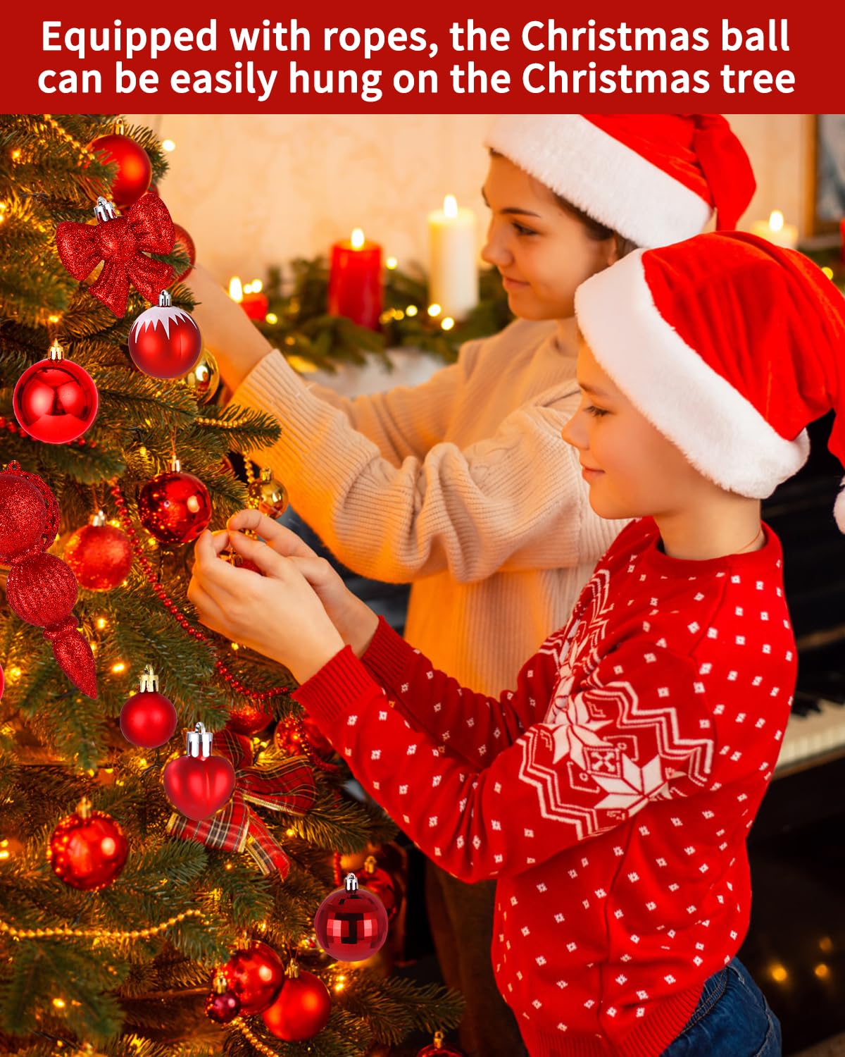 Dieses 105-teilige Weihnachtsschmuck-Set macht deinen Baum perfekt! Enthalten sind rote Kugeln in 3 Größen (3cm, 4cm, 6cm), 4 Schneeflocken, eine Christbaumspitze als Stern und 5 Karten.