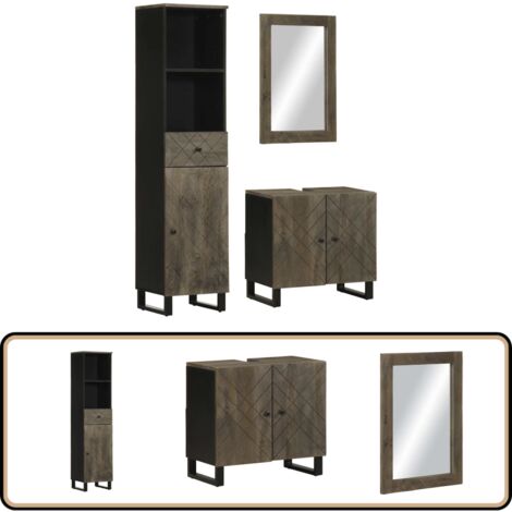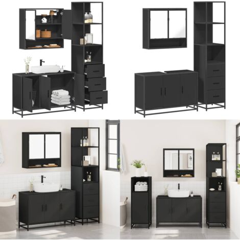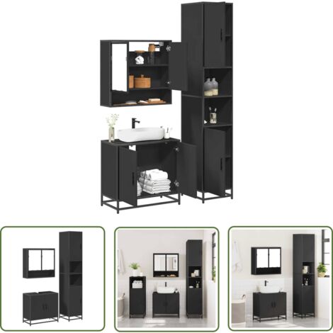 Massbinet 3-teiliges Badmöbel-Set Schwarz - Moderner Badezimmerschrank