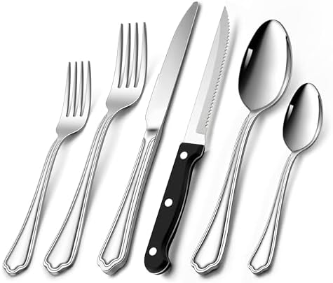 Perfekt für große Familien und Feiern! Dieses Homikit Besteckset hat alles, was du brauchst - 12 Essmesser, 12 Essgabeln, 12 Salatgabeln, 12 Esslöffel und 12 Teelöffel. Damit bist du für jede Gelegenheit bestens ausgestattet!