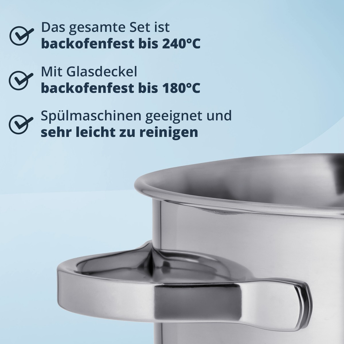 KHG 3-teiliges Edelstahl Topfset Mit Glasdeckel - 14cm, 16cm, 20cm Für Alle Herdarten