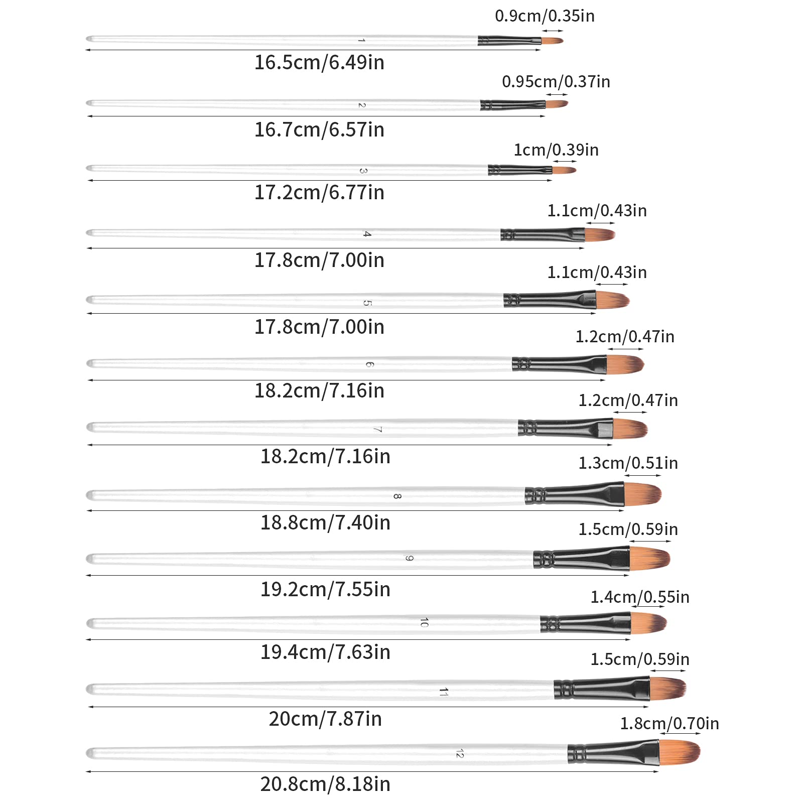 Andibro 12-teiliges Pinsel Set - Professionelle Nylonpinsel Für Acryl, Öl & Aquarell