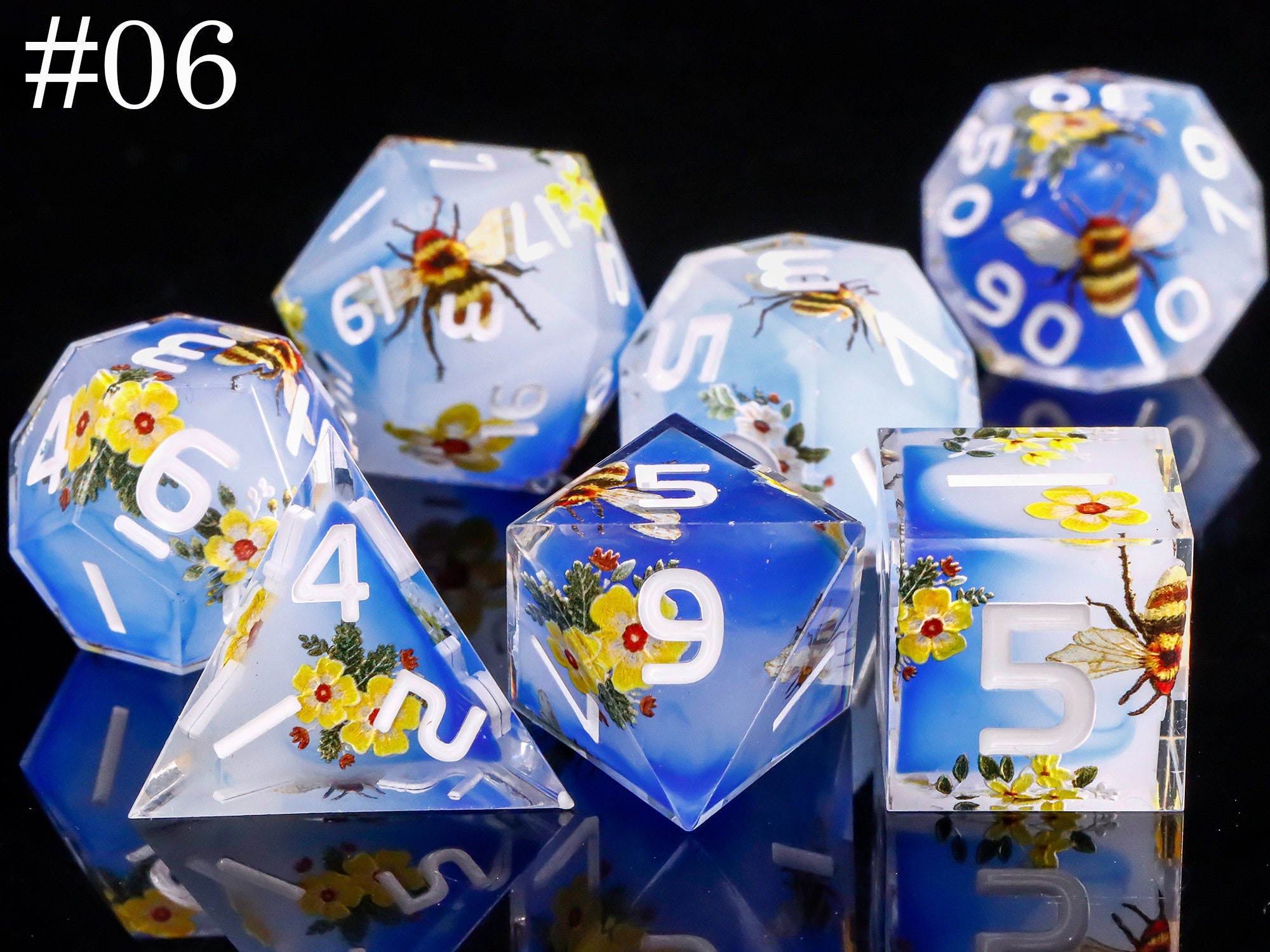Würfel-Fans aufgepasst! Dieses handgefertigte 7-teilige Würfel-Set von DNDND ist ein echter Hingucker. Enthalten sind D4, D6, D8, D10, D12, D20 und D% - alles aus Kunstharz mit scharfen Kanten und spiegelähnlicher Politur. Jeder Würfel ist mit echten getrockneten Blumen verziert und kommt im wunderschönen Metall-Etui mit Drachen-Motiv. Perfekt für Rollenspiele wie Dungeons & Dragons, Pathfinder, Warhammer und mehr. Aufgrund der Handarbeit ist jedes Set ein Unikat mit leichten Variationen in Farbe und Design. Ein must-have für jeden RPG-Spieler!