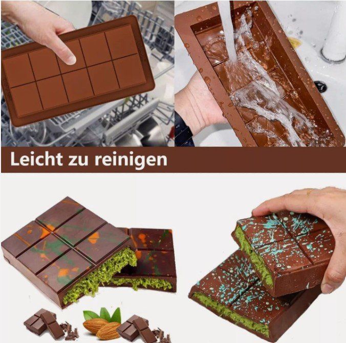 Mit diesen Silikon-Forms aus dem Lumanothy-Set wird Schokolade selber machen zum Kinderspiel! Die 4 verschiedenen Dubai-Formen sorgen für professionelle Ergebnisse wie vom Chocolatier. Aus 100% lebensmittelechtem Silikon - absolut BPA-frei und unbedenklich. Die flexible Form lässt die Kreationen super leicht herauslösen, ohne dass sie brechen. Von -40°C bis 230°C hitzebeständig, also perfekt für Gefrierfach, Backofen und Mikrowelle geeignet. Einfach in der Spülmaschine zu reinigen. Nicht nur für Schokolade, sondern auch für Eis, Seife oder Kerzen geeignet - der Kreativität sind keine Grenzen gesetzt!