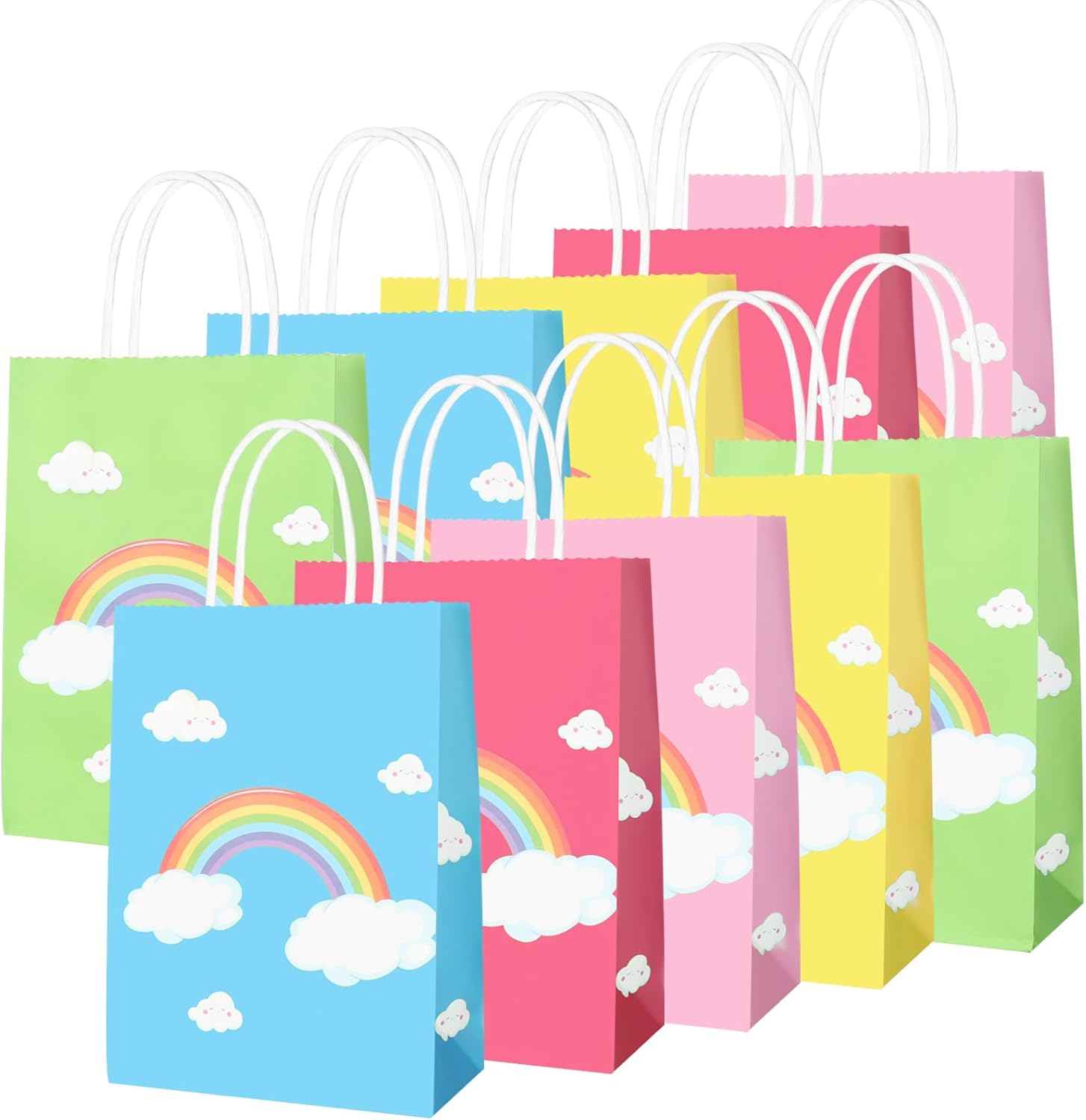 10 Regenbogen Geschenktüten 22x16x8cm - Bunte Party Tüten Für Kindergeburtstage