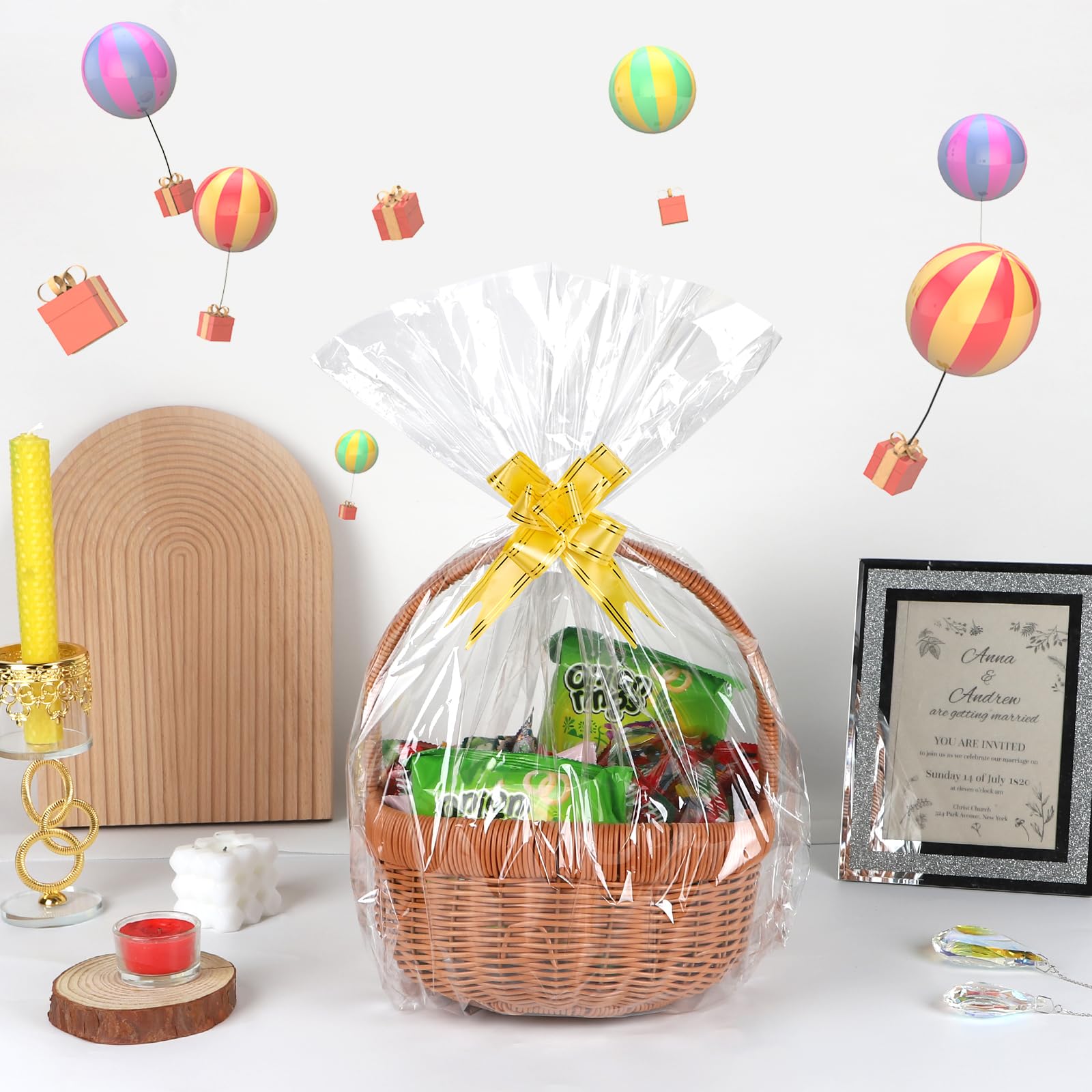 Geschenkfolie Cellophantüten 60x90cm | 10 Stück Transparent | Mit Zierschleifen | Für Große Geschenke