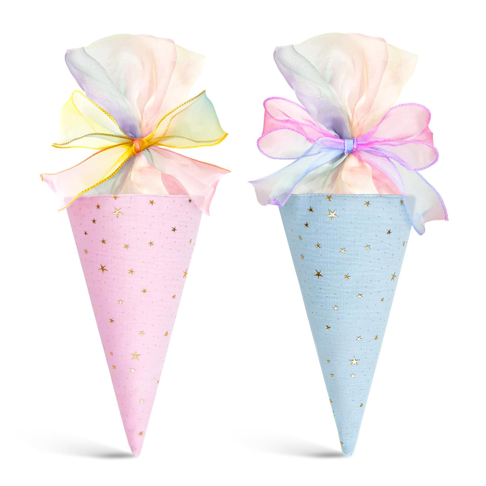 Perfekt für Geschwister zur Einschulung! Dieses süße 2er-Set Schultüten in Blau und Rosa macht den ersten Schultag doppelt schön. Mit 49cm Höhe und 18,5cm Durchmesser bieten die Tüten reichlich Platz für Süßigkeiten, kleine Geschenke und Überraschungen. Aus hochwertigem Baumwollstoff gefertigt, sind sie robust und mit praktischen Schleifen versehen. Die Montage ist kinderleicht - in wenigen Schritten hast du zwei wunderschöne Schultüten fertig. Ideal als Geschenk zur Einschulung, für Kindergarten-Abschiede oder als Partydekoration. Die leeren Tüten kannst du nach deinen Wünschen befüllen und individuell gestalten. Ein unvergessliches Geschenk für kleine ABC-Schützen und ihre Geschwister! Mach den ersten Schultag zu einem besonderen Erlebnis mit diesen charmanten Schultüten.