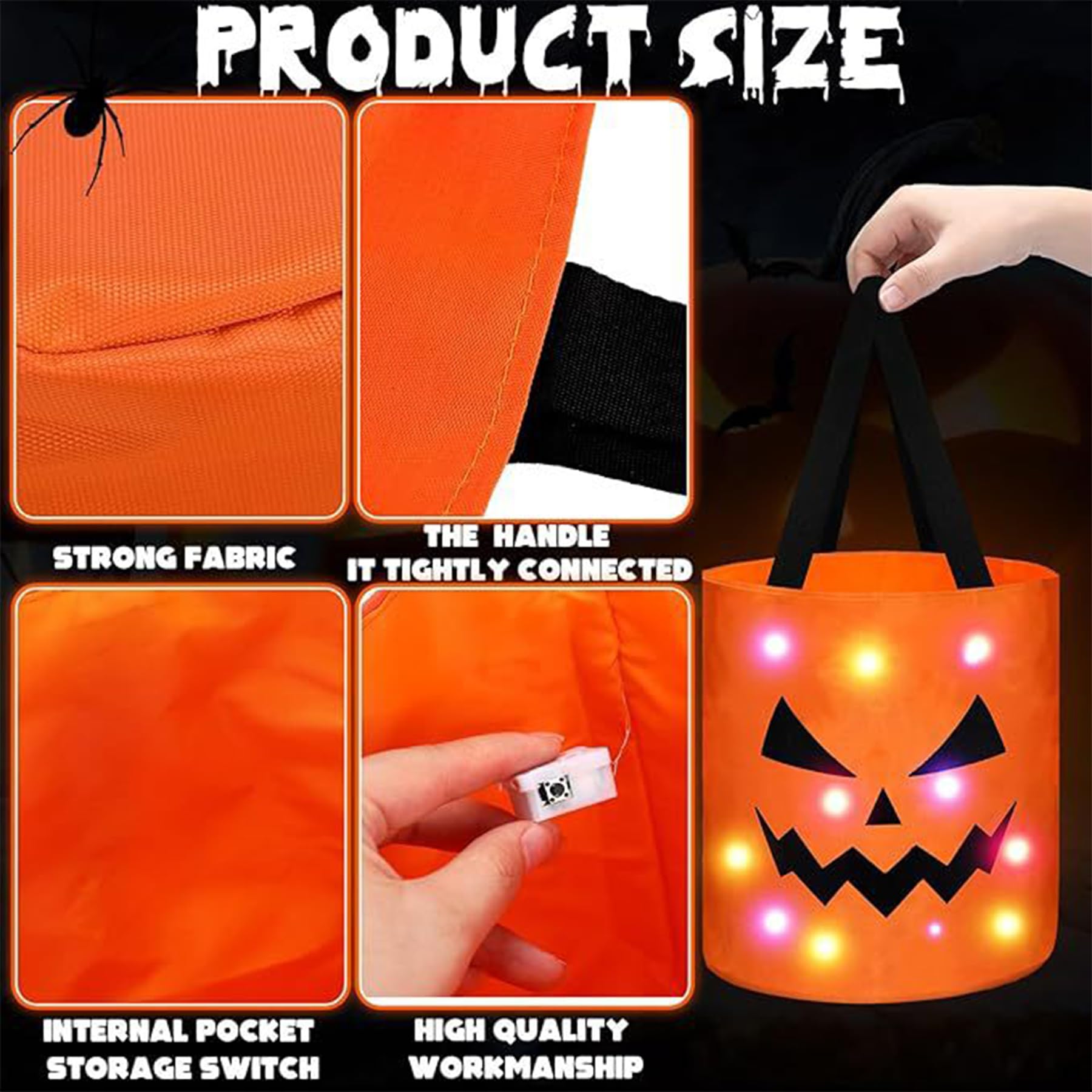 SEAFRONT 2x Halloween Geschenktüten Mit LED - Leuchtende Kürbis Süßigkeitentaschen