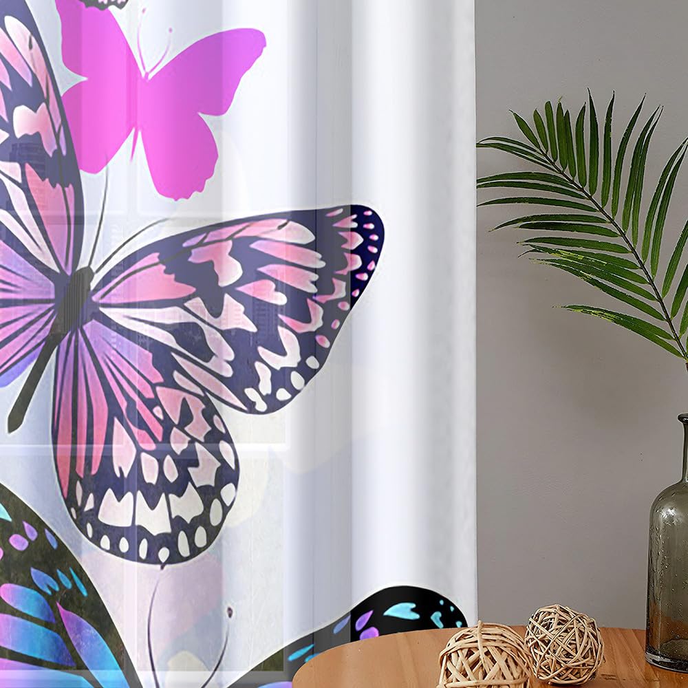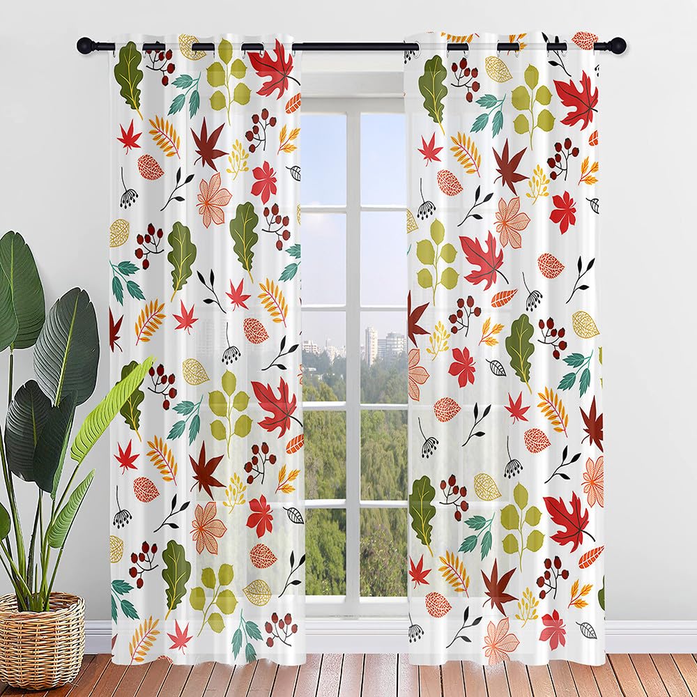 Surwin Kirschblüten Vorhänge - Tüll Gardinen Mit Ösen 55x95cm (2er Set)