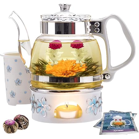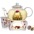 Teabloom Blütentee Set - Glas Teekanne Mit 12 Blühenden Tees