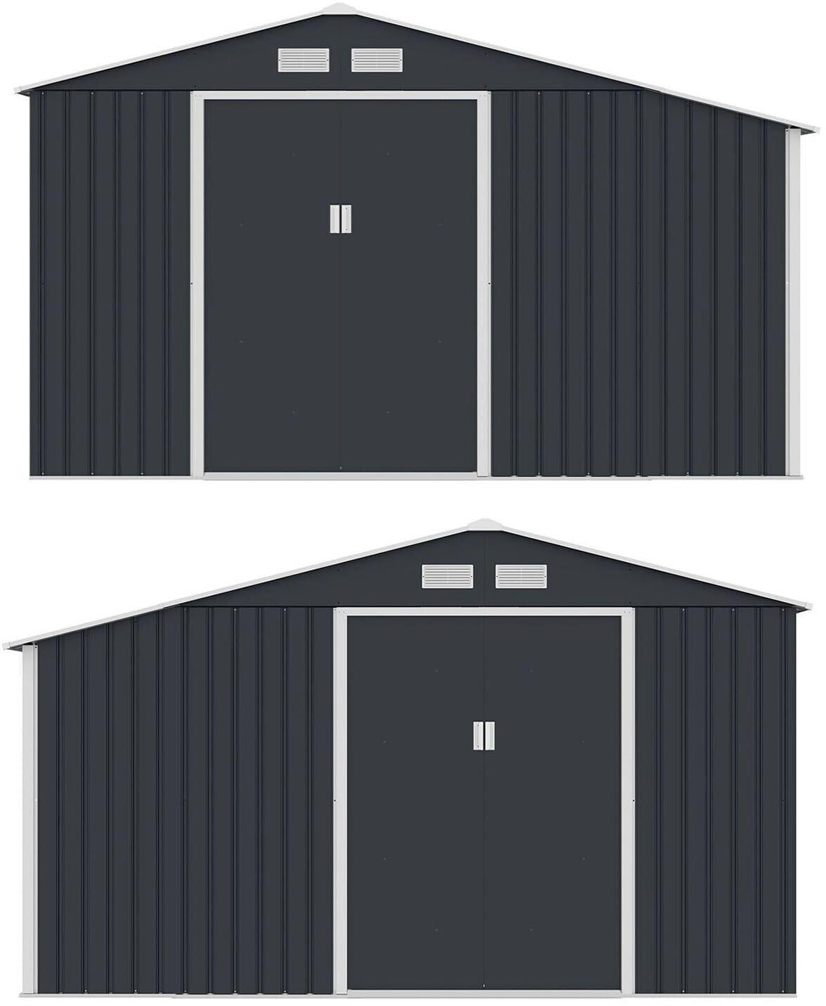 Geräteschuppen Aus Metall - Großer Gartenhaus Mit Holzunterstand