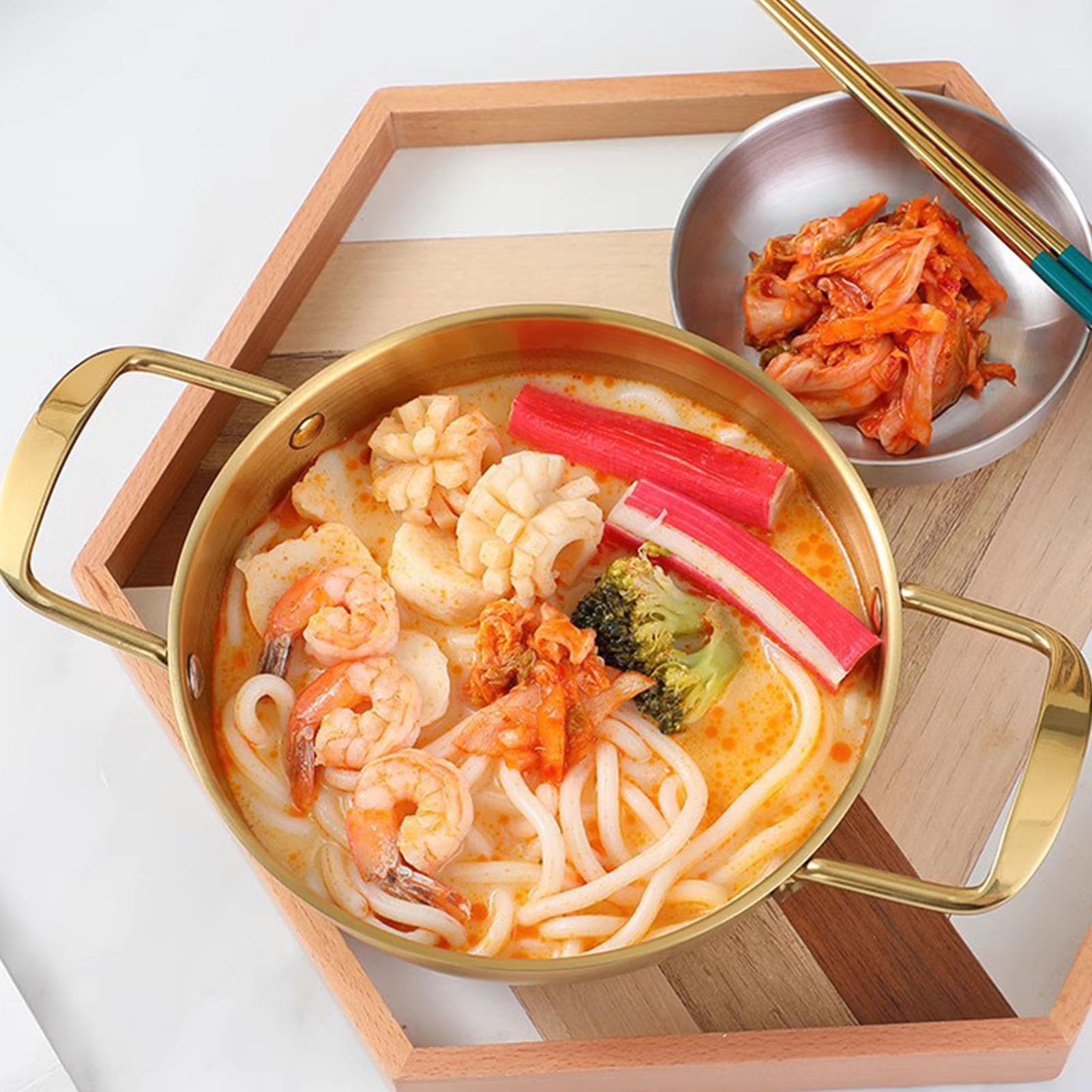 Koreanischer Ramen-Topf Edelstahl Mit Doppelgriff - Induktionsgeeignet, Schnell Erhitzend (Gold)