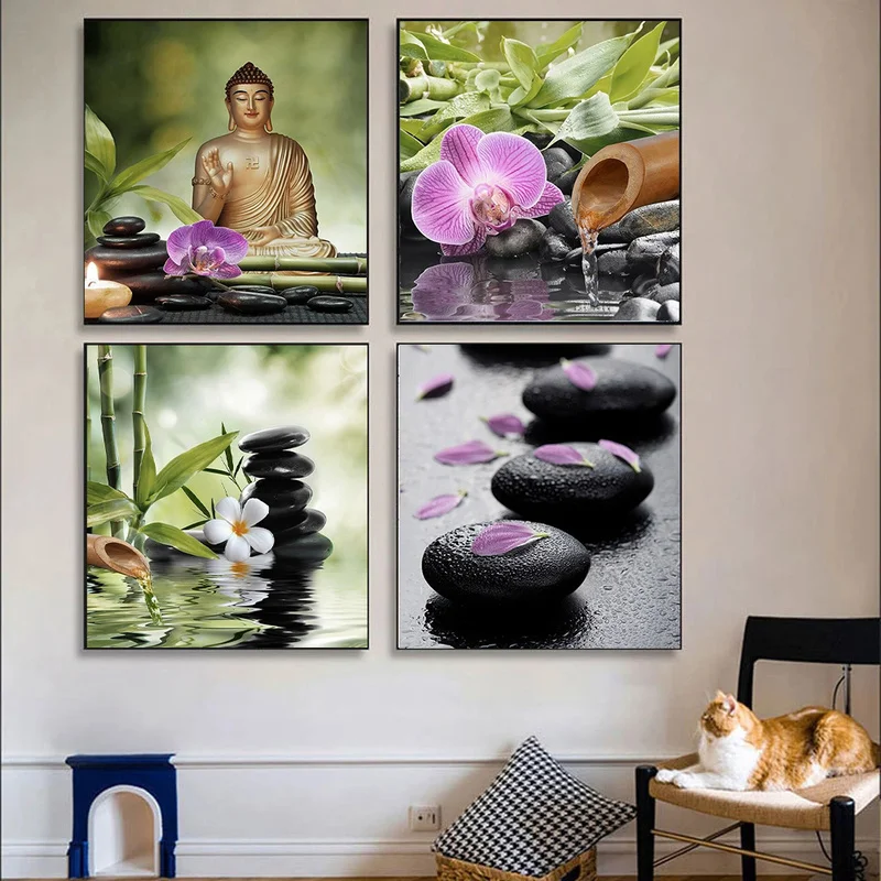 3-tlg. Badezimmer Teppich-Set - Zen Garten Design, Rutschfeste Matte