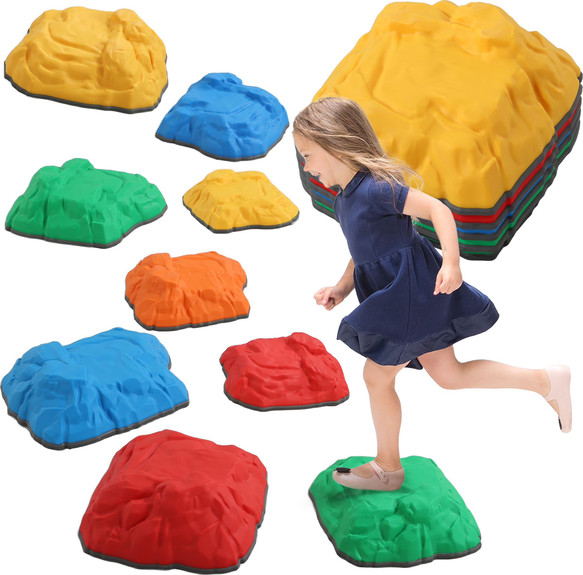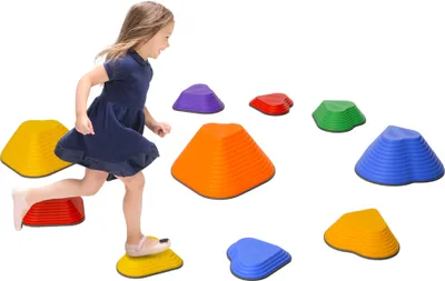 Coole Balanciersteine für kleine Bewegungskünstler! 6 bunte Steine in verschiedenen Größen (bis 36,5cm). Rutschfeste Unterseite für sicheres Spielen. Hält bis zu 80kg aus - auch für Erwachsene geeignet! Super zum Stapeln und platzsparend verstauen. Fördert Gleichgewicht, Koordination und Motorik spielerisch. Für drinnen und draußen perfekt. Einfach aufbauen und schon kann der Balance-Spaß beginnen. Deine Kinder werden stundenlang beschäftigt sein!