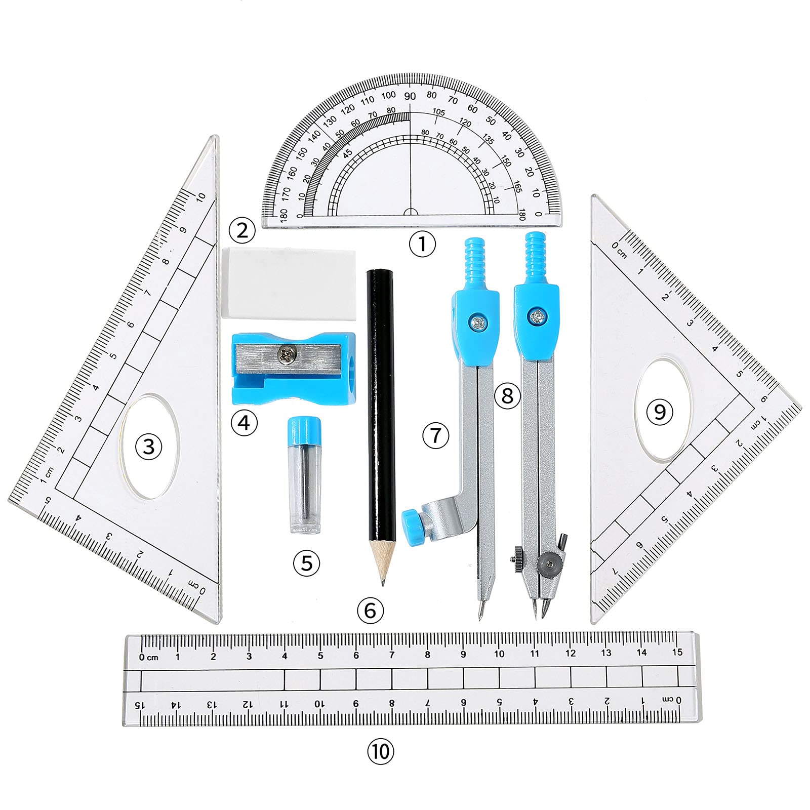 10-tlg. Geometrie-Set - Komplettset Für Schule & Studium