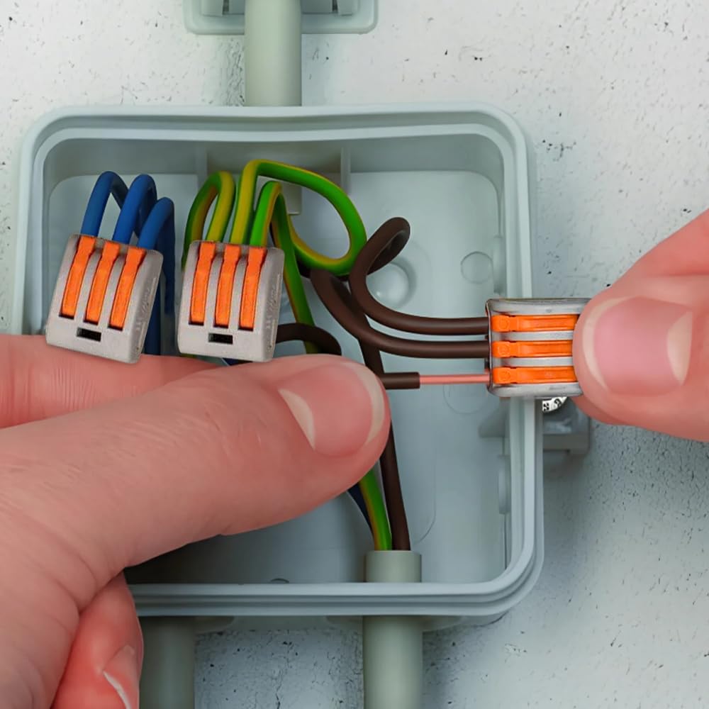 Kein Kabelsalat mehr! Dieses 75-teilige Set enthält alles, was du für sichere Kabelverbindungen brauchst: 35x 2-Anschlüsse, 25x 3-Anschlüsse und 15x 5-Anschlüsse. Perfekt für Kabel mit Querschnitten von 0,5-4,0 mm². Die Klemmen sind flammhemmend und aus vernickeltem Kupfer - super sicher und langlebig. Mit dem praktischen Schiebeknopf machst du die Verbindung im Handumdrehen: Clip um 90° drehen, Kabel rein, Knopf drücken - fertig! Ideal für Lampen, Steckdosen, Schalter oder auch im Auto. Spare dir lästiges Löten und umständliche Installationen. Maximal 450V und 32A - perfekt für den Hausgebrauch!