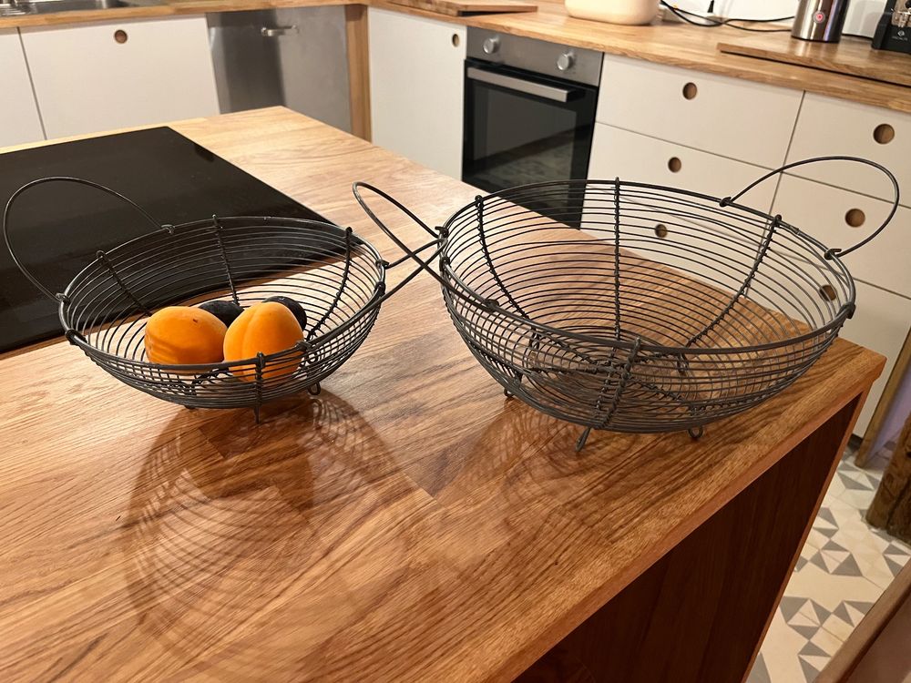 Drahtkorb Set 2-tlg - Metall Mit Holzgriffen Für Ordnung
