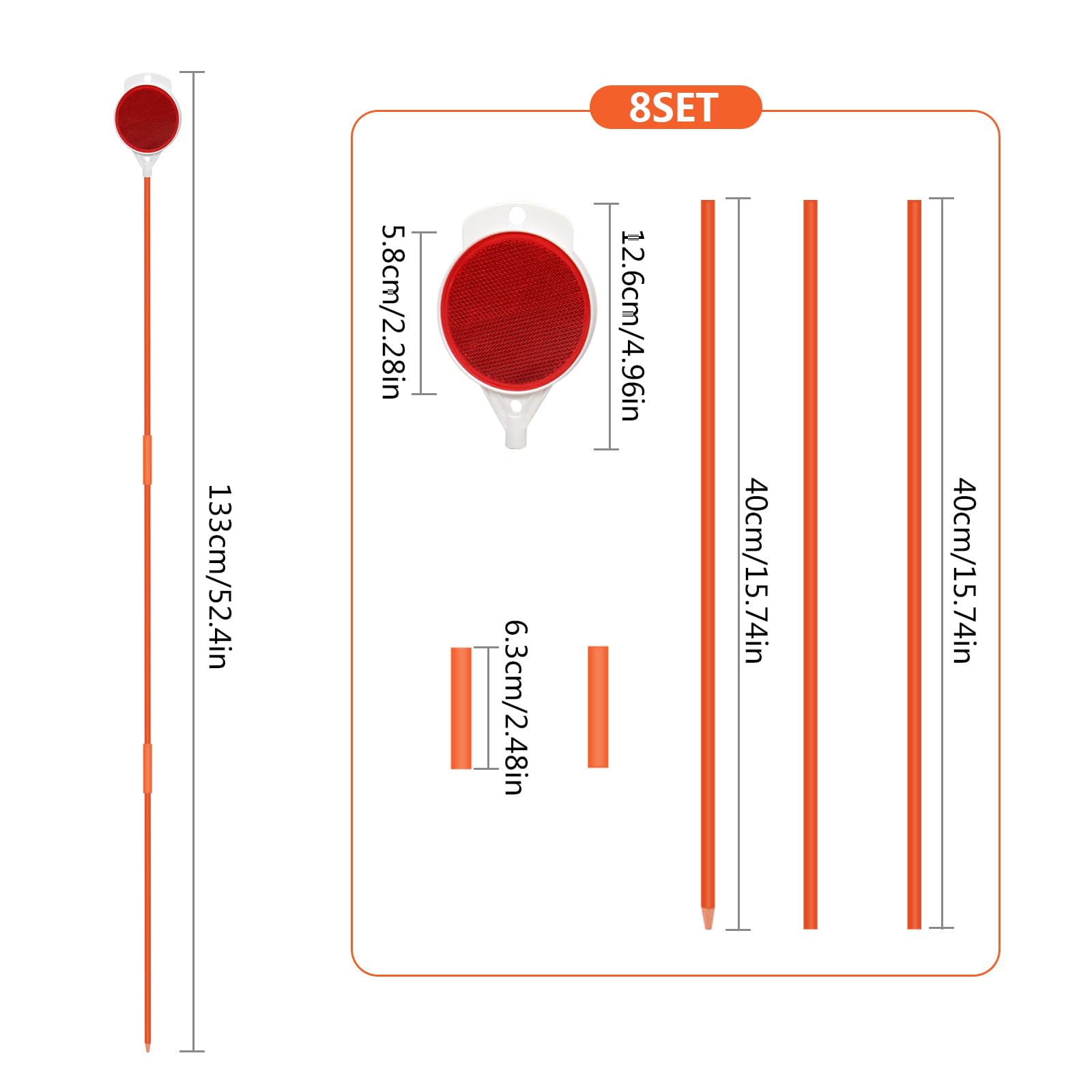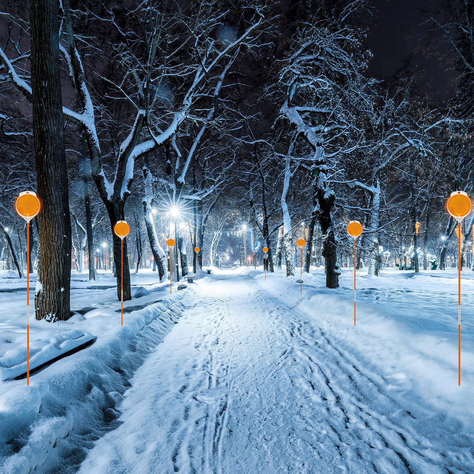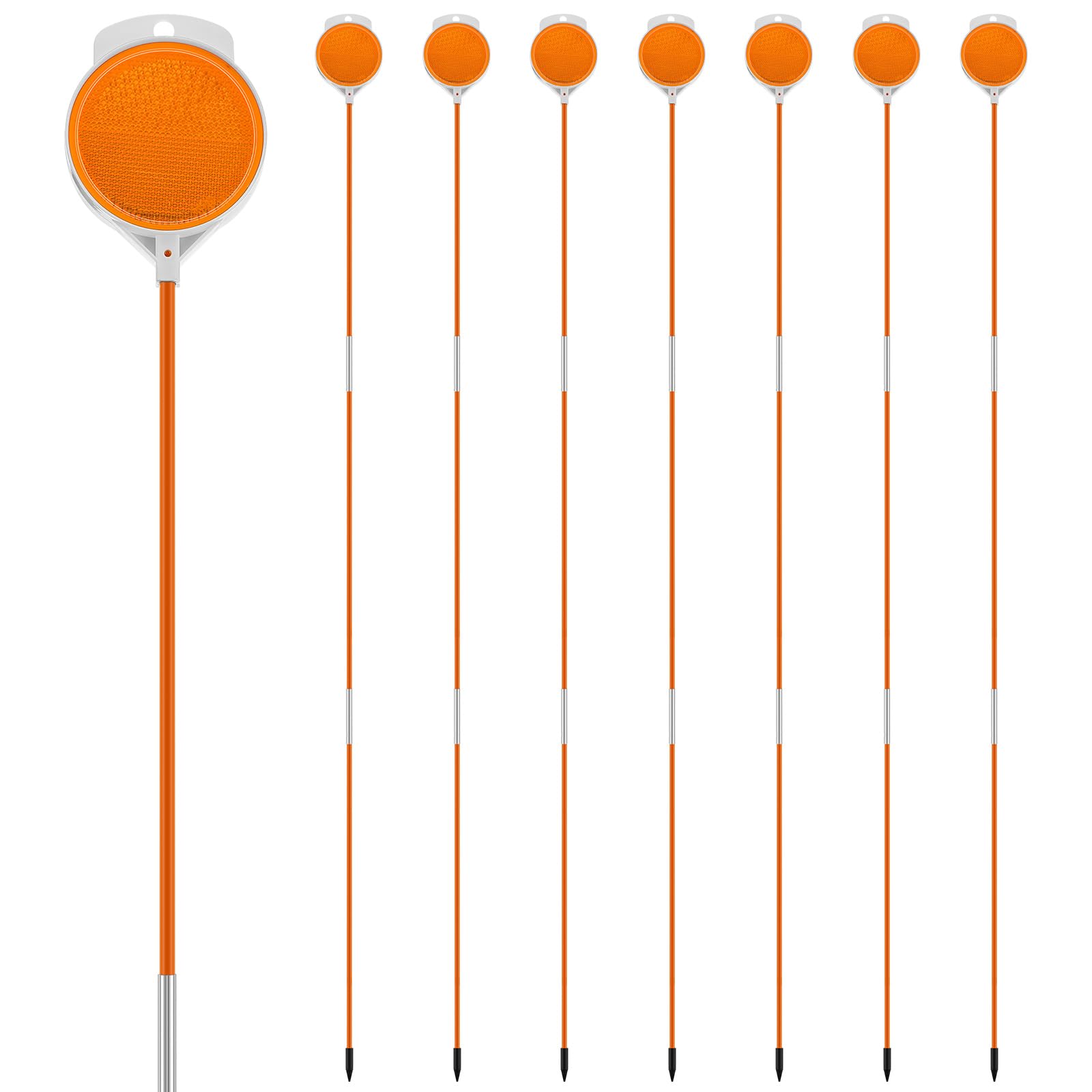 Sicherheit geht vor! Diese 8 reflektierenden Auffahrtmarkierungen sorgen auch bei Nacht und schlechtem Wetter für klare Sichtverhältnisse. Jedes Set besteht aus 3 Fiberglas-Stangen (120cm), 2 Verbindungsstücken und 1 orangefarbenem Reflektor. Die doppelseitigen Reflektoren sind bei Nebel, Schnee oder Dunkelheit optimal sichtbar. Robust und wetterfest - brechen nicht, verformen sich nicht und rosten nicht. Einfach in den Boden stecken und deine Auffahrt ist markiert. Perfekt für Privatgrundstücke, Garageneinfahrten oder Grundstücksgrenzen.