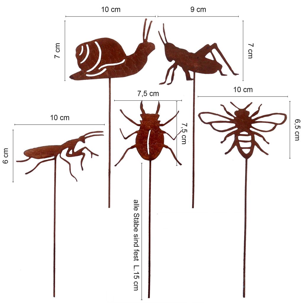 Hol dir die Safari nach Hause! Dieses 5-teilige Set mit afrikanischen Tieren in rustikaler Rost-Optik verwandelt deinen Garten in eine echte Wildnis. Enthalten sind Giraffe, Nilpferd, Nashorn, Schimpanse und Zebra - alle liebevoll detailliert. Aus robustem Metall mit 15cm langen Stäben, perfekt für Blumenbeete, Töpfe oder als Blickfang. Die natürliche Rostoptik ist absolut wetterfest und wird mit der Zeit noch charmanter. Ein super Geschenk für Gartenliebhaber oder Safari-Fans! Einfach in die Erde stecken und schon zieht afrikanisches Flair in deinen Garten ein. Deine Gäste werden begeistert sein!