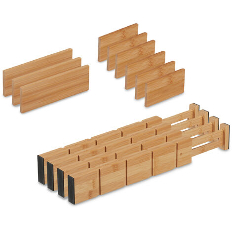 Relaxdays Schubladentrenner 10-tlg. - Verstellbar Aus Bambus 34-44 Cm