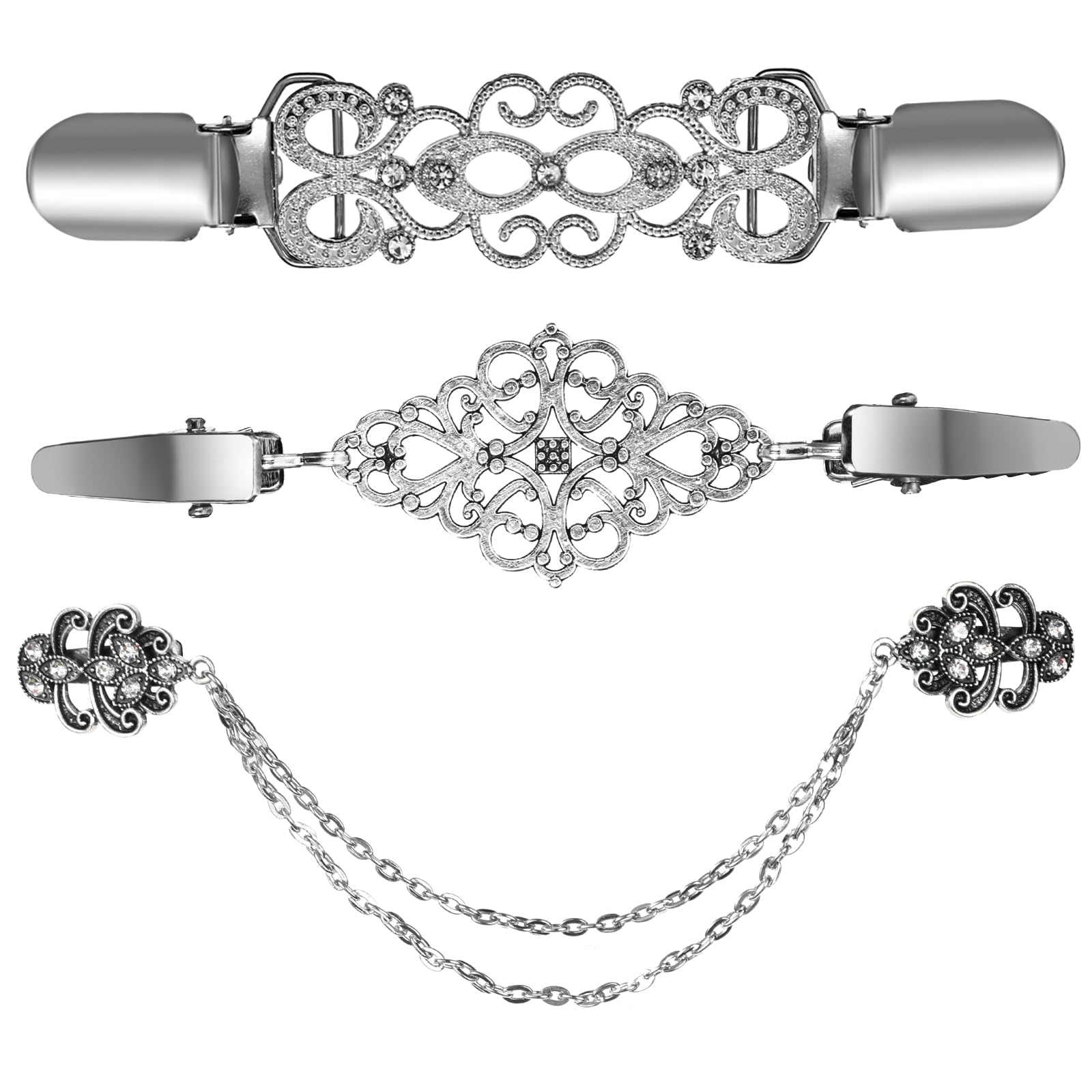 SGERUFZ Cardigan-Clips Set 3-tlg. - Vintage Schalhalter Aus Zinklegierung Silber