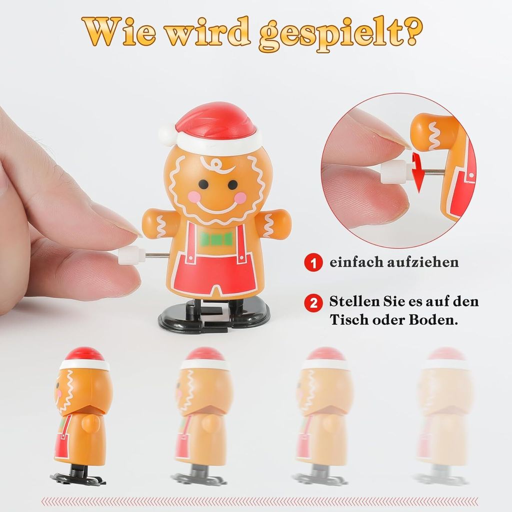 Oh wie schön! Dieses 6-teilige Aufziehspielzeug-Set von Toddmomy bringt richtig Weihnachtsstimmung ins Haus. Mit Weihnachtsmann, Schneemann, Weihnachtsbäumen und anderen klassischen Motiven. Das Beste: Keine Batterien nötig! Einfach aufziehen und zuschauen, wie die niedlichen Figuren loswackeln. Perfekt zum Füllen von Weihnachtsstrümpfen, als Geschenk oder für die Weihnachtsdekoration. Aus robustem ABS-Material gemacht, das auch bei wilderen Spielaktionen hält. Ob für Kinder, Erwachsene oder die ganze Familie - dieses Spielzeug sorgt für strahlende Augen unterm Christbaum. Einfach ein paar Mal aufdrehen, loslassen und den Zauber der Weihnacht genießen! Weihnachtlicher Spaß, der nie ausgeht - hol dir jetzt dieses entzückende Set!