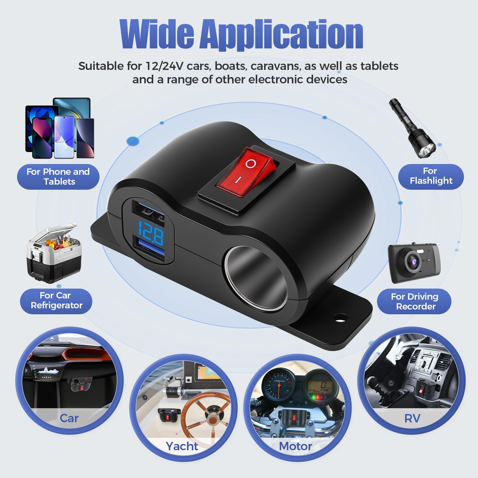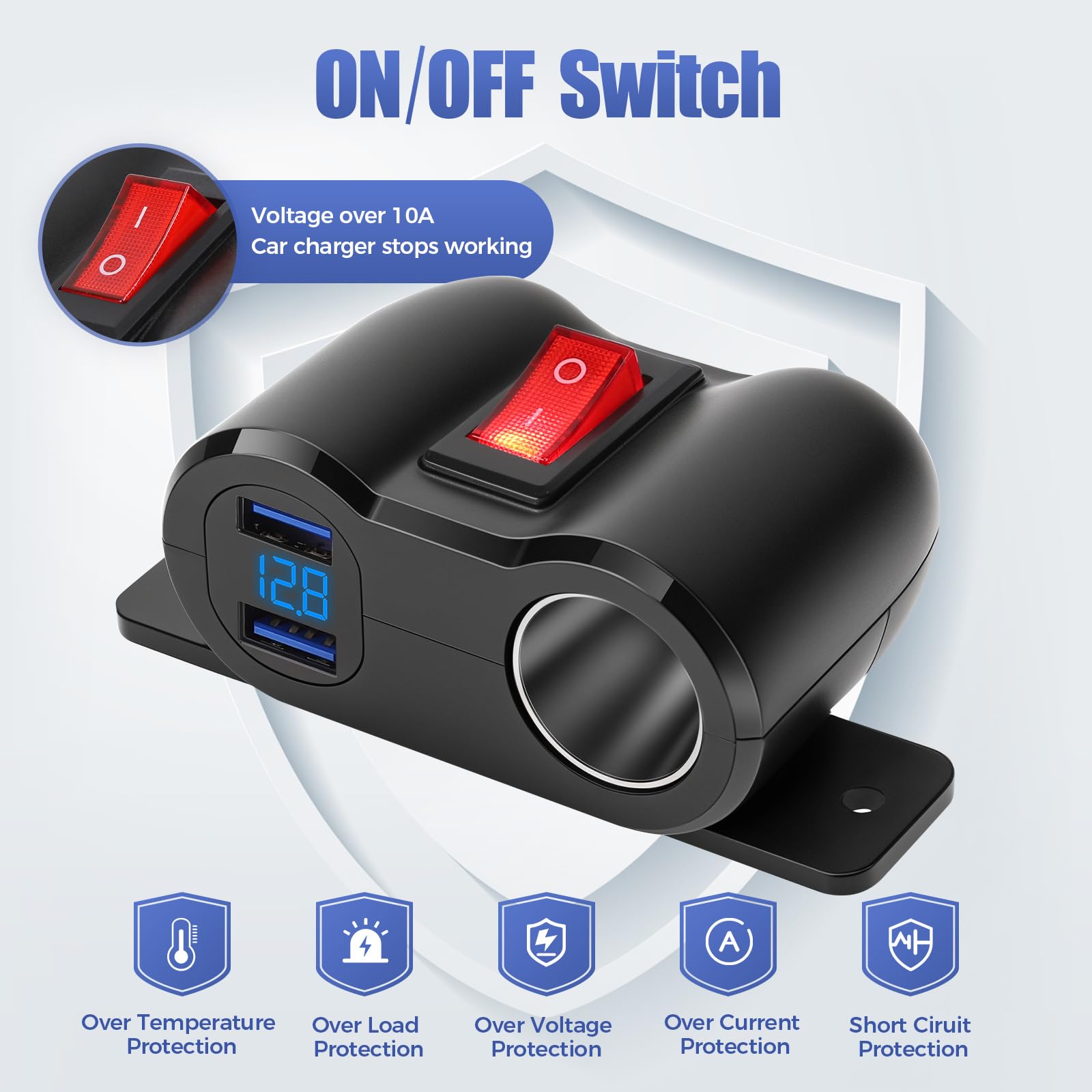 Thlevel Auto Ladegerät 36W USB-C - Wasserdicht Mit Voltmeter 12V-24V