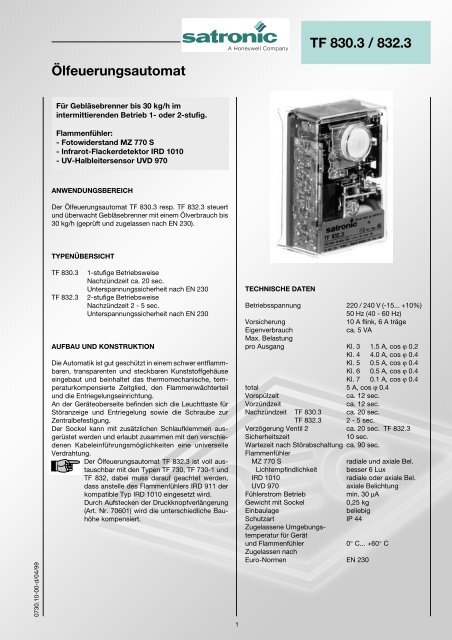 TF830.3 Ölfeuerungsautomat Steuergerät - 220/240V Heizungssteuerung Mit IP40 Schutz