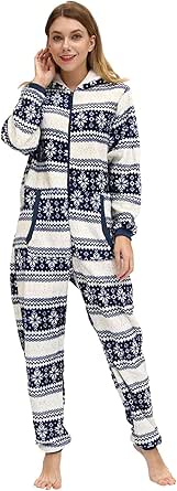Damen Pyjama-Leggings Mit Füßen & Kapuze - Warmer Schlafanzug Overall