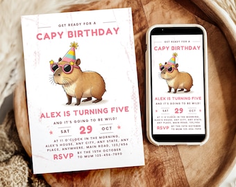 20x Capybara Geburtstagseinladungen - Mit Umschlägen & Stickern