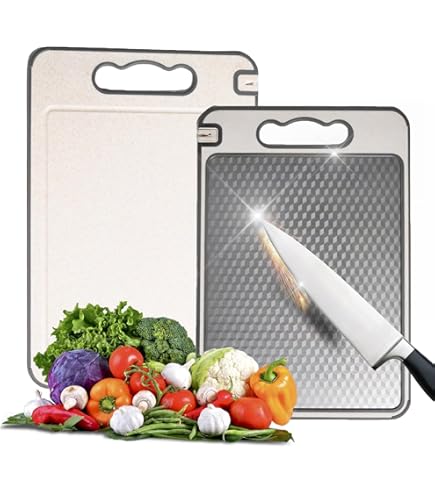 Dieses Edelstahl Schneidebrett ist ein echter Game-Changer in der Küche! Doppelseitig nutzbar - Edelstahl-Seite für Fleisch, Kunststoff-Seite für Obst und Gemüse! Aus hochwertigem 304er Edelstahl, rostfrei und hygienisch! Die kratzfeste Netzstruktur schont deine Messer und reduziert Riefen um 90%! Integrierte Saftrille fängt Flüssigkeiten sicher auf! Rutschfeste Silikonkante für stabilen Stand! Mit Messerschärfer für tägliche Pflege! Nur 0,8kg leicht - einfach zu handhaben! Spülmaschinengeeignet für schnelle Reinigung! Keine Geruchsbildung, keine Geschmacksübertragung! Ob Profi-Koch oder Hobby-Koch - dieses Schneidebrett macht einfach alles mit! Einfach umdrehen und für verschiedene Lebensmittel nutzen! Perfekt für jede moderne Küche!