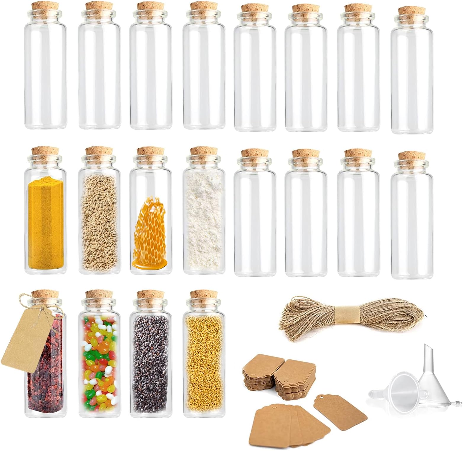 Total süße Mini-Glasfläschchen für alle Bastelprojekte! 32 Stück mit je 40ml Fassungsvermögen - da kannst du kreativ werden! Mit Naturkorken die perfekt schließen. Inklusive Juteseil und Kraftpapier-Etiketten zum Beschriften. Aus klarem Glas - sauber und transparent. Perfekt zum Befüllen mit Gewürzen, Ölen, Samen oder kleinen Geschenken. Super für Hochzeitsgastgeschenke, Weihnachtsdekoration oder DIY-Projekte. Kannst du bemalen, bekleben oder natürlich belassen. Auch toll für Wunschflaschen, Trockenblumen oder Muschelsammlungen. Macht sich super als Deko im Haus oder Garten. Die Box kommt sicher verpackt an - nichts geht kaputt. Ein Traum für alle Hobby-Bastler und Dekorations-Fans! Einfach bestellen und der Kreativität freien Lauf lassen!
