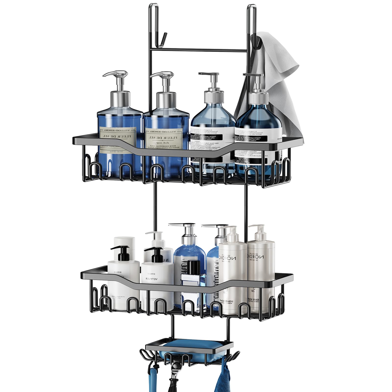 ZUIMENG Duschablage Zum Hängen Ohne Bohren - 3-tägiges Duschregal Mit Haken & Seifenschale, Silberfarben