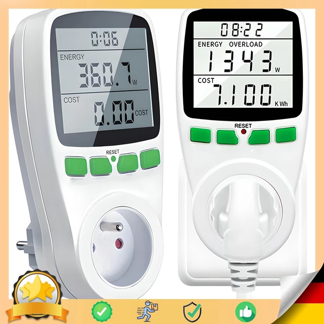 Willst du wissen, wie viel Strom deine Geräte wirklich verbrauchen? Dieser PM01 Leistungsmesser liefert dir alle wichtigen Daten! Misst präzise Strom bis 65A, Leistung bis 99999W und Frequenz bis 99,9Hz. Das übersichtliche Display zeigt dir alle Werte auf einen Blick. Besonders praktisch: Der Überlastalarm warnt dich, wenn 16A oder 3680W überschritten werden - super sicher! Aus robustem ABS-Material gebaut - hält auch mal einen Sturz aus. Perfekt für den Hausgebrauch oder für Elektriker. Zeigt dir auch den Strompreis und die Gesamtkosten an - so behältst du deine Energiekosten im Blick. Einfach zwischen Steckdose und Gerät stecken und schon misst er los. Hilft dir, Stromfresser zu identifizieren und Geld zu sparen. Mit eingebauter Batterie (2x LR44) immer einsatzbereit. Ein unverzichtbares Tool für jeden, der seine Stromkosten senken will!