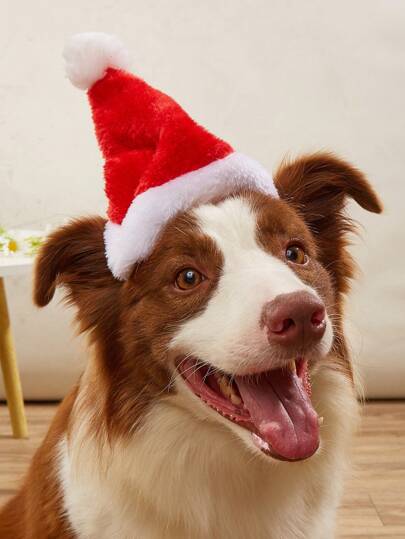 Weihnachtsmütze Für Hunde - Rote Plüschmütze Verstellbar