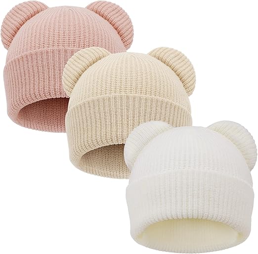 DRESHOW Baby Wintermütze Mit Bärenohren - Weiche Strickmütze 0-24 Monate