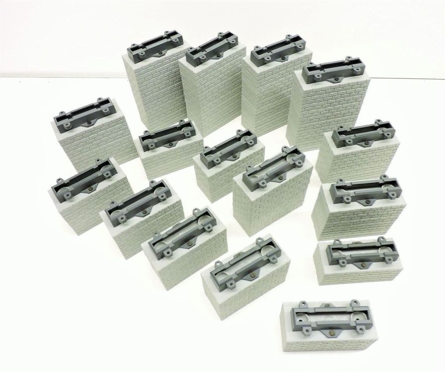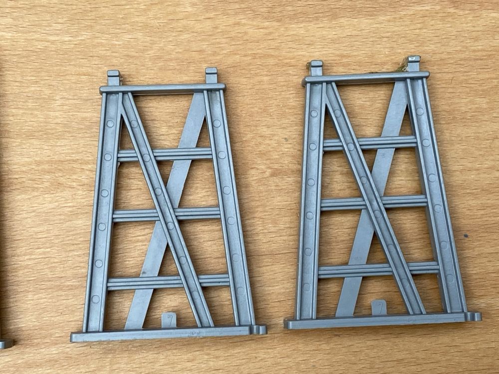 Baue deine eigene Eisenbahnwelt! Diese 6 grauen Brückenstützen aus Kunststoff geben deiner Modelleisenbahn die Höhe, die sie verdient. Perfekt für kreative Layouts und stundenlangen Spielspaß. \\n\\nJede Stütze misst 7x5,5x4 cm und ist super leicht - ideal um sie überall mitzunehmen. Sie passen zu den meisten Holzeisenbahnsystemen und ersetzen mühelos alte oder beschädigte Stützblöcke. \\n\\nWarum Kinder sie lieben: \\n• Fördern praktische Fähigkeiten \\n• Ermöglichen höhere Brückenkonstruktionen \\n• Stabil und sicher \\n• Einfach zu kombinieren \\n• Perfekt für Geburtstage und besondere Anlässe \\n\\nOb für kleine Eisenbahnfans oder erfahrene Modellbauer - mit diesen Stützen werden selbst die kühnsten Brückenprojekte Wirklichkeit!