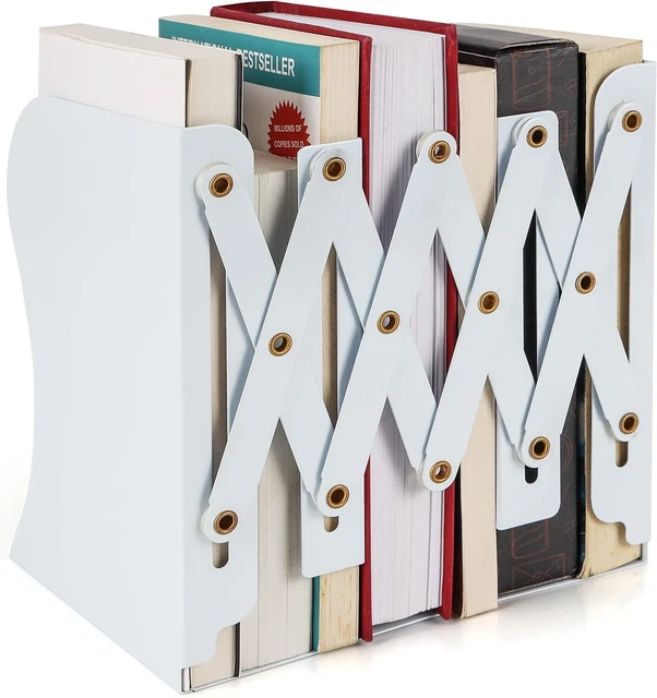 Schluss mit umfallenden Büchern im Regal! Diese Belle Vous Buchstützen aus Metall sind die Lösung aller Ordnungs-Probleme. Verstellbar von 10 bis 41cm - passen also für kleine Taschenbücher genauso wie für dicke Wälzer oder sogar Ordner. Die weiße Oberfläche rostet nicht und kratzt nicht - sieht einfach clean aus. Unten sind Anti-Rutsch-Pads die deine Möbel schützen. Jede Stütze wiegt stolze 807g - die halten wirklich alles stand was du zwischen sie klemmst. Super fürs Bücherregal, im Home-Office für Akten, oder für CDs und Vinyl. Das schlanke Design sieht modern aus und nimmt kaum Platz weg. Endlich Ordnung im Chaos - und das noch stylisch!