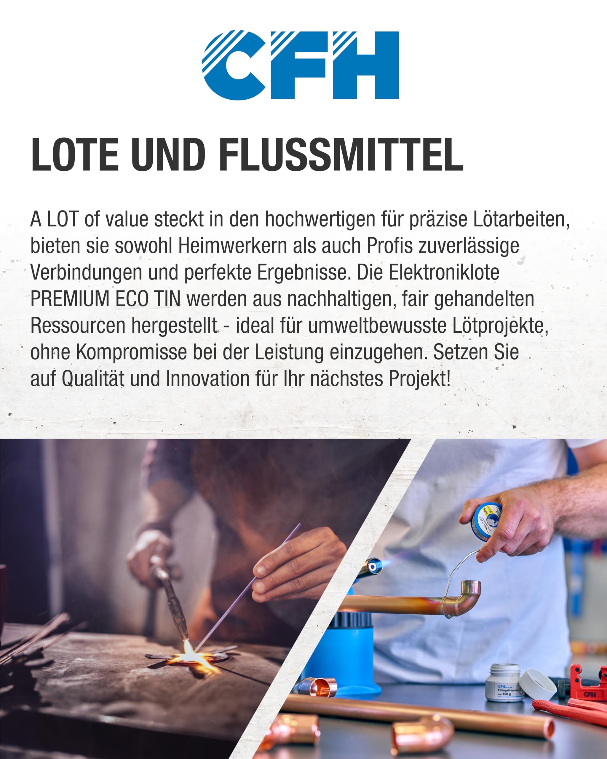 Hey du Heimwerker! Dieses CFH Lötzinn ist genau das Richtige wenn's um Kupferarbeiten geht. Die beiden Dreikantstangen à 333 mm sind super praktisch zum Weichlöten von Kupberrinnen, Fallrohren oder anderen Kupferteilen im Dachbereich. Mit der Spezifikation Sn97Cu3 (97% Zinn, 3% Kupfer) ist das Zeug komplett bleifrei und entspricht der DIN EN ISO 9453 - also alles safe und langlebig! Die Schmelztemperatur von 227-310°C gibt dir die volle Kontrolle beim Löten. Wichtig: Verwende unbedingt das passende Lötwasser LWK 368 für perfekte Ergebnisse! CFH steht für Qualität und Innovation - da kannst du dich drauf verlassen. Egal ob Profi oder Hobbyhandwerker, mit diesem Lötzinn machst du nichts verkehrt. Übrigens: Ideal auch zum Verzinnen von Kupferlitzen oder für Tauchlötungen!