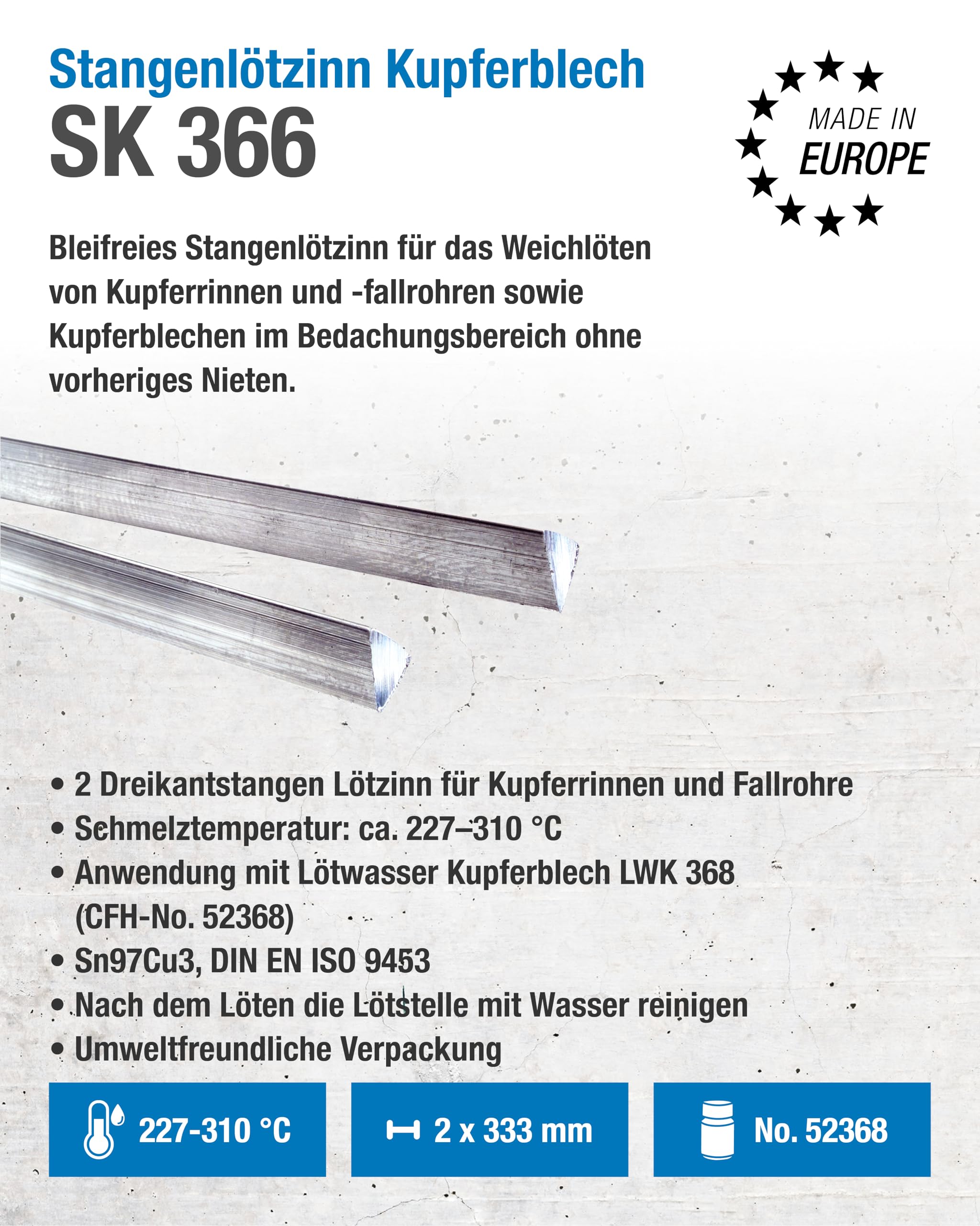 CFH Lötzinn Für Kupferbleche - 2x Dreikantstangen Bleifrei, Schmelztemperatur 227-310°C