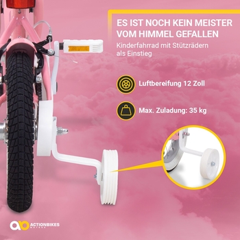 Das perfekte erste Fahrrad für dein Kind! Das XUANYU Kinderfahrrad gibt es in drei Größen: 12 Zoll für 2-4 Jährige, 14 Zoll für 3-5 Jährige und 16 Zoll für 4-8 Jährige. Mit den stabilen Stützrädern lernen Anfänger das Fahren ganz ohne Stress - und wenn dein Kind sicherer wird, kannst du sie einfach abmontieren. Der robuste Stahlrahmen hält bis zu 150 kg aus und ist super langlebig. Besonders praktisch: Der geschlossene Kettenschutz schützt kleine Finger und Kleidung vor Schmutz. Der bequeme Sattel und Lenker sind höhenverstellbar und wachsen mit deinem Kind mit. Die Zweihandbremsen sind extra für kleine Hände designed und leicht zu bedienen. Und der süße Korb vorn bietet Platz für Lieblingsspielzeug oder Schätze vom Spaziergang. Einfache Montage - nur Vorderreifen, Sitz und Stützräder müssen montiert werden. Inklusive Werkzeug und Anleitung. So macht Fahrradfahren lernen richtig Spaß!