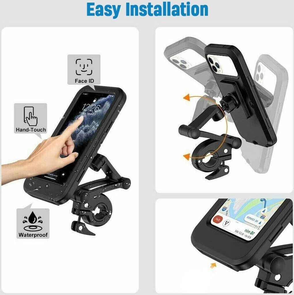 Dein Handy sicher am Lenker! Diese Halterung schützt dein Smartphone vor Stößen und Vibrationen beim Radfahren. Absolut wasserdicht - hält auch bei Regen stand. Einfache Schnellmontage ohne Werkzeuge, passt an alle Lenker. Verstellbare Klemmen halten jedes Handy sicher, auch auf holprigen Wegen. Drehbar für horizontale und vertikale Nutzung. Aus robustem ABS-Kunststoff, schwarz und unauffällig. Mit 18x10x10cm kompakt aber stabil. Perfekt für Navigation beim Radeln, E-Scooter fahren oder Motorrad. Dein Handy bleibt sicher und du hast die Karte immer im Blick. Ein Muss für alle, die ihr Handy unterwegs nutzen!