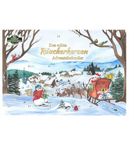 Der Adventskalender, der nach Weihnachten duftet! Mit 24 verschiedenen Crottendorfer Räucherkerzen im bezaubernden Aschenbrödel-Design. Jeden Tag eine neue Duftüberraschung - das macht die Vorweihnachtszeit noch magischer! Die traditionellen Räucherkerzen sind made in Germany und verbreiten diesen typischen, gemütlichen Weihnachtsduft, den wir alle lieben. Das Format von 29,7x21cm passt perfekt an jede Wand oder Tür. Stell dir vor: Jeden Morgen ein neues Türchen öffnen, eine Räucherkerze anzünden und der ganze Raum füllt sich mit weihnachtlichem Duft - das ist pure Vorfreude! Perfekt für die ganze Familie, denn im Gegensatz zu Schokoladenkalendern macht dieser garantiert nicht dick. Ob im Wohnzimmer, im Flur oder im Kinderzimmer - dieser Kalender sorgt für tägliche Weihnachtsstimmung. Mach die Wartezeit auf Weihnachten zu einem sinnlichen Erlebnis! Ein wunderbares Geschenk für alle, die die traditionelle deutsche Weihnacht lieben. Die Düfte werden dich durch den gesamten Advent begleiten und dein Zuhause in eine weihnachtliche Wohlfühloase verwandeln.