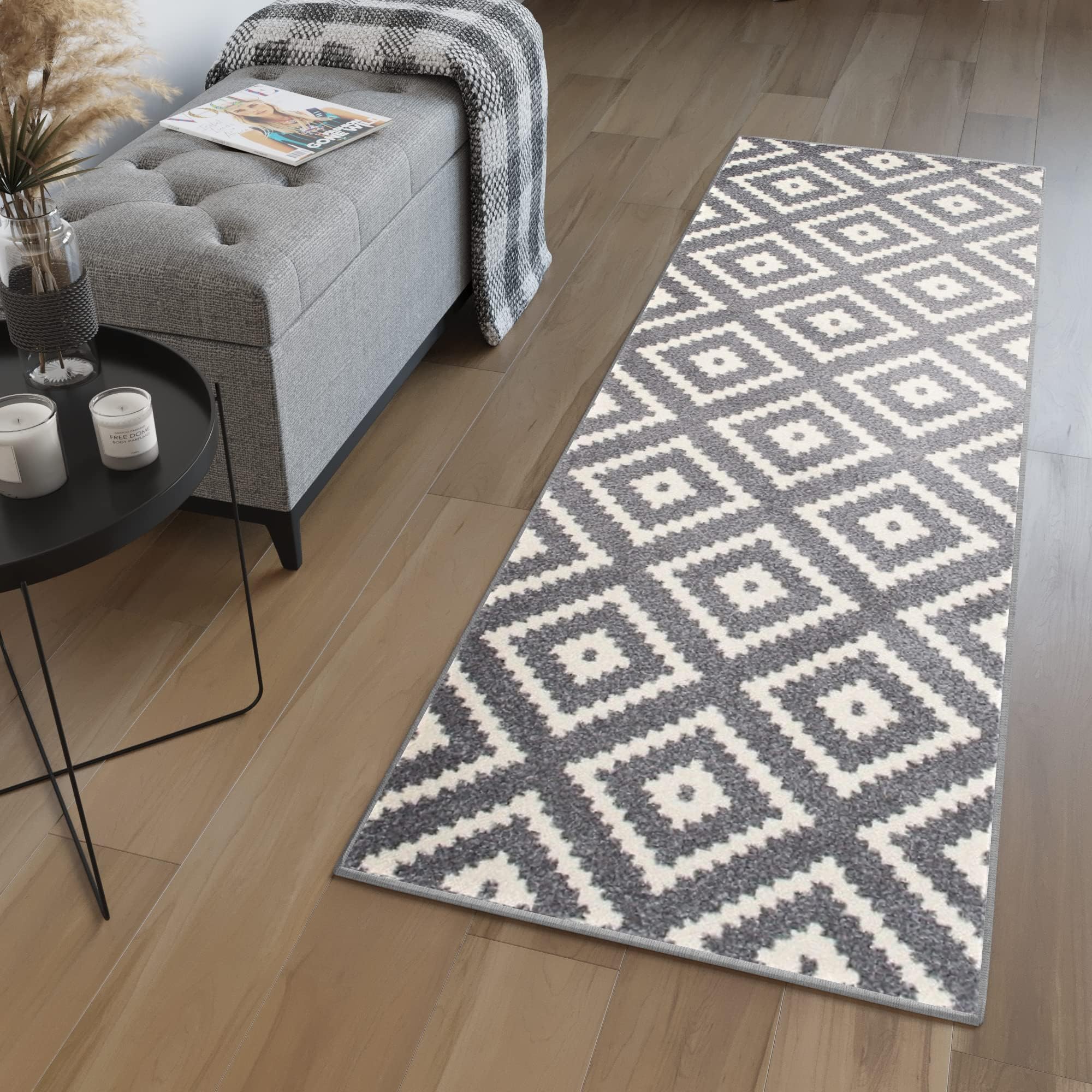 Cheerx Teppich Läufer 60x90cm Grau - Waschbar, Rutschfest, Baumwolle