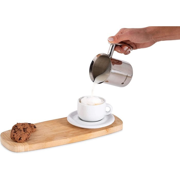 Hey Kaffee-Fans, dieser Milchaufschäumkrug ist ja mal richtig professionell! Aus hochwertigem Edelstahl mit goldener Teflon-Beschichtung sieht er nicht nur edel aus, sondern ist auch super praktisch. Mit 600 ml Fassungsvermögen ist er perfekt für mehrere Cappuccinos oder Latte Macchiatos auf einmal. Die Teflon-Beschichtung verhindert das Anbrennen der Milch und macht die Reinigung super einfach. Perfekt für Cafés, Restaurants oder den heimischen Esstisch - ob für den Morgenkaffee oder besondere Anlässe. Der ergonomische Griff liegt gut in der Hand und die Ausgieß-Lippe ermöglicht präzises Gießen für tolle Latte Art. Einfach Milch einfüllen, aufschäumen und schon zauberst du cremigen Milchschaum wie ein Profi-Barista! Auch ideal als Gastgeschenk oder für die Outdoor-Küche. Bevor du bestellst, schau aber lieber nochmal auf die genaue Größe und Farbe - wegen unterschiedlicher Monitore kann die Farbe minimal abweichen. Ein echter Hingucker in jeder Küche und das perfekte Werkzeug für perfekten Milchschaum!